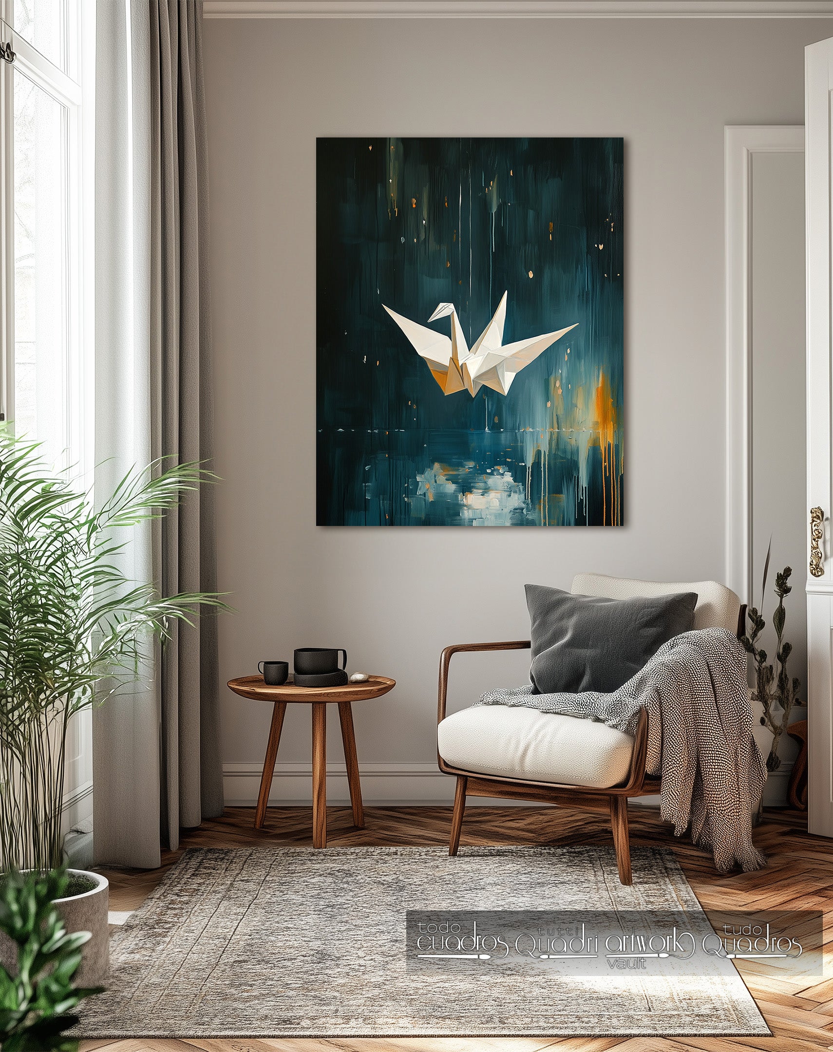 Grulla sobre azul